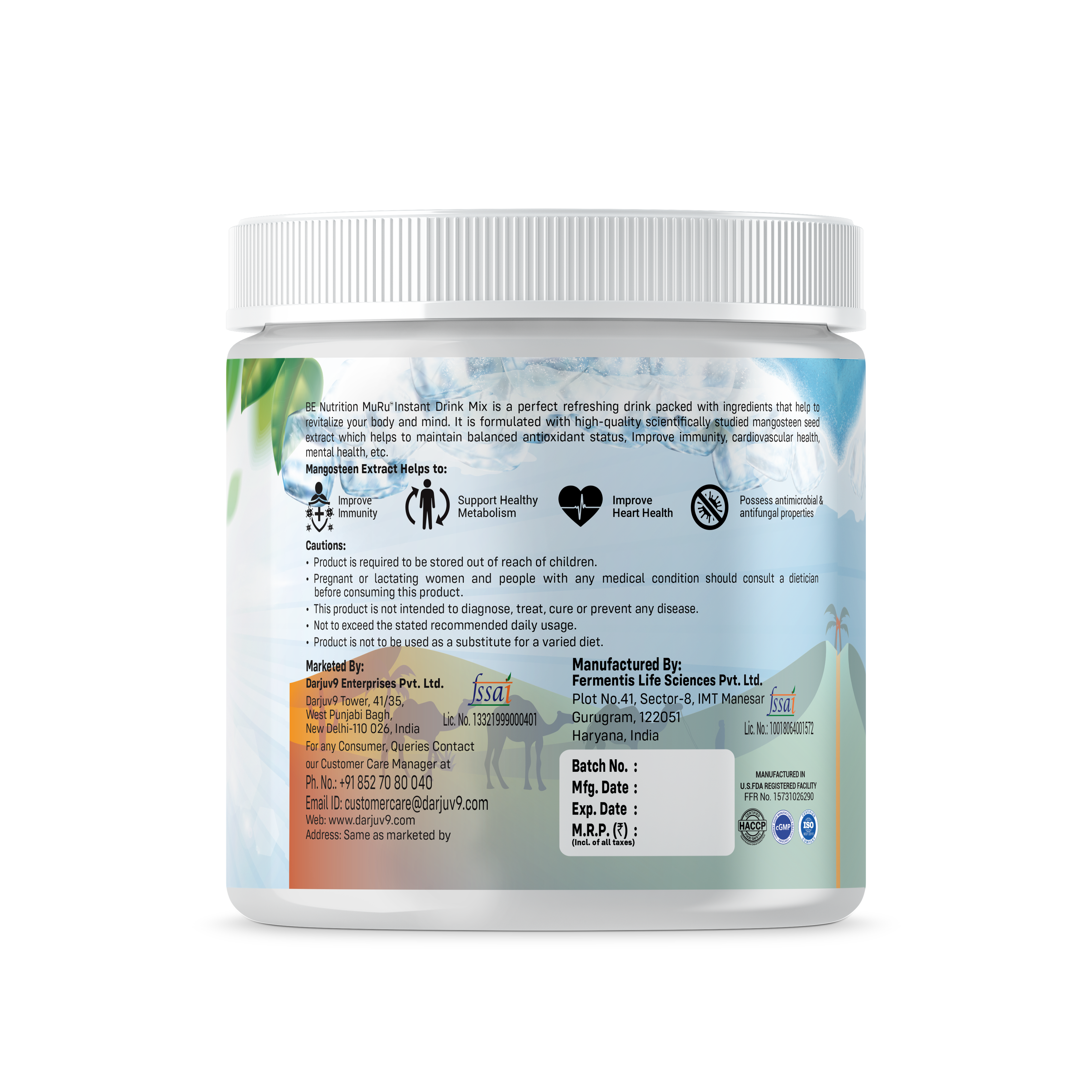BE Nutrition MuRu Instant Drink Mix is a perfect refreshing drink packed with ingredients that help to revitalize your body and mind. It contains high-quality scientifically studied mangosteen seed extract with freeze-dried fruit powder, which helps maintain balanced antioxidant status and improve immunity, cardiovascular health, & mental health.